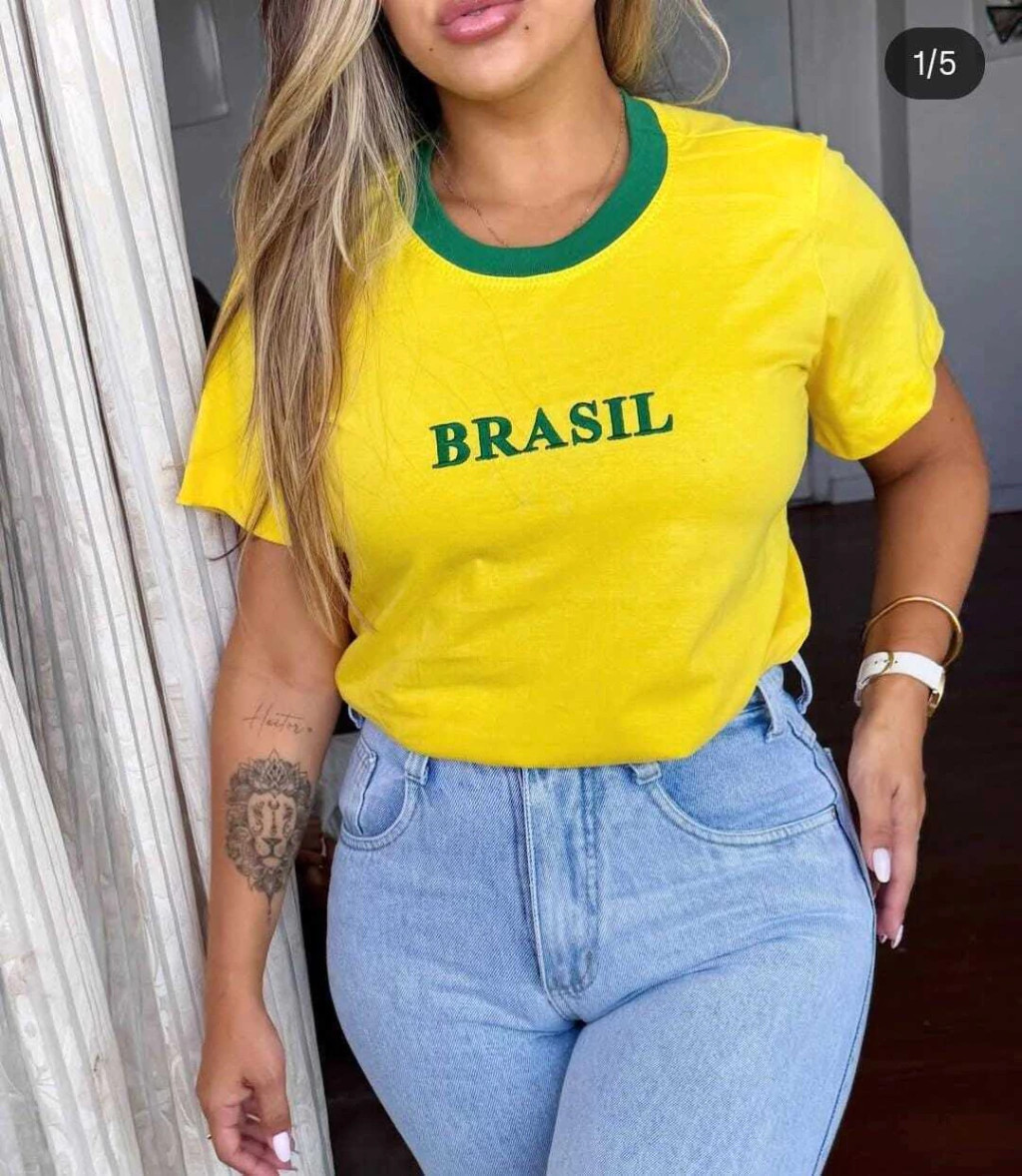 T-shirt 100% algodão Bordadas com tema Brasil (P,M e G) - Copa do mundo