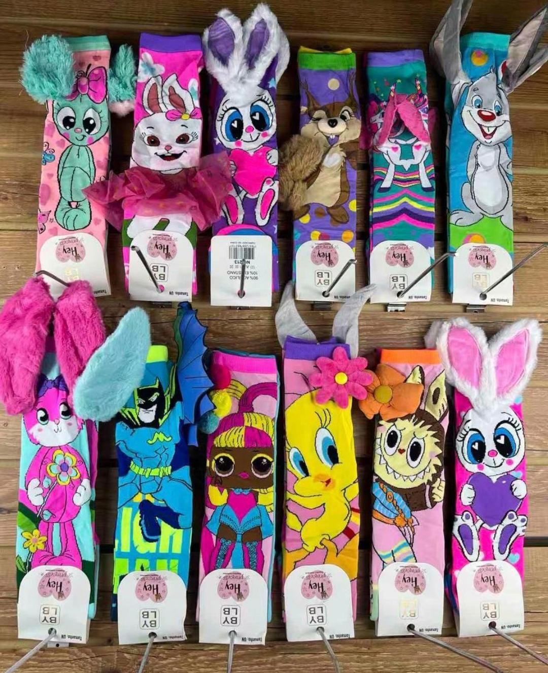 Kit C/100 Meias alta infantil 3D bichinhos